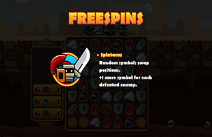 Выигрышные взрывы не бесконечны. Они выполняют важную функцию – помогают маленькому гладиатору побеждать врагов. У первого из них три сердечка. Каждый дроп отнимает у него жизнь. После победы над первым, на второго и третьего понадобится по удару. Пять дропов – и победа ваша. При отсутствии выигрышных сочетаний здоровье врагов моментально восстанавливается.
