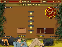 Игровые автоматы Гараж от компании Игрософт запомнились азартным игрокам еще со времен наземных игровых залов. В онлайн версии интерфейс и управление аппаратом остались прежними, добавилась возможность ознакомиться с ним в бесплатном демо режиме. На 5-ти его барабанах можно установить до 9-ти активных линий, дикий символ в нем ключи от мерседеса, а самый дорогой – эмблема игрового автомата «Garage». Аппарат отличается хорошей выдачей и, конечно, своими бонусными играми, которых здесь две, их мы опишем подробнее.