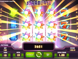 Игровой автомат Starburst, или как назвали его русскоязычные игроки Звезда - один из самых популярных представителей компании-производителя NetEnt. Как и в однокласснике Space Wars есть возможность выпадения так называемых респинов – дополнительных бесплатных ходов, условия получения которых, подробно описаны ниже. Пять барабанов аппарата, на которых можно играть по 10-ти активным линиям то и дело наполняются дикарями - звездами, что, благодаря способности комбинаций совпадать и с первого и с последнего барабана дуют солидные возможности для выигрыша. FlameSlots дает Вам возможность опробовать этот игровой автомат бесплатно и без регистрации и убедиться в его отличной выдаче без затрат.